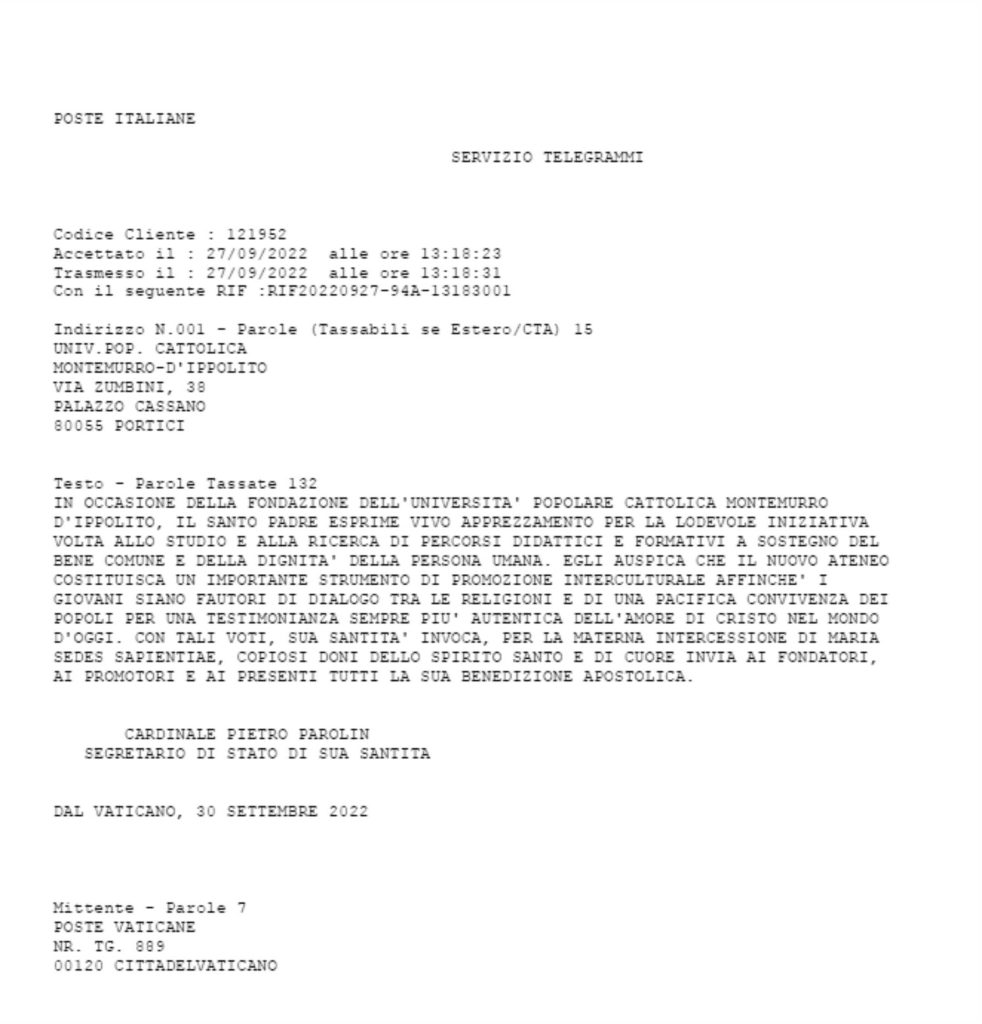 Telegramma del Santo Padre